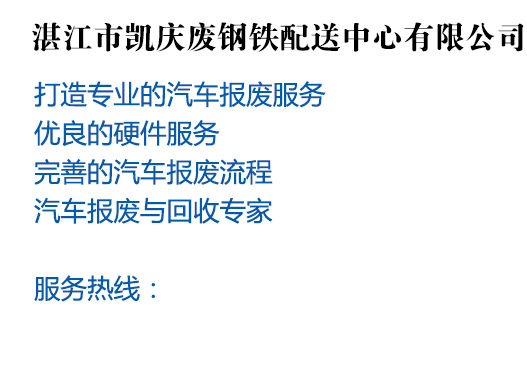 湛江市區(qū)報(bào)廢汽車(chē)回收中心、赤坎分公司地址:湛江市赤坎區(qū)城西快線(xiàn)與站前路十字路口